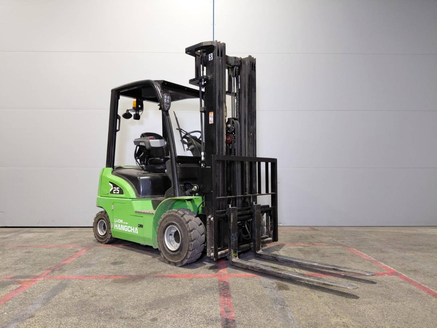 Covered roof 4th valve inlet on fork carriage Ветровое стекло LED road lighting Lithium battery Защитная решетка каретки Mini-lever Panoramic rearview mirror Rear blue spot Rear work lights Reported sideshift Reverse signal Strobe beacon USB plug |